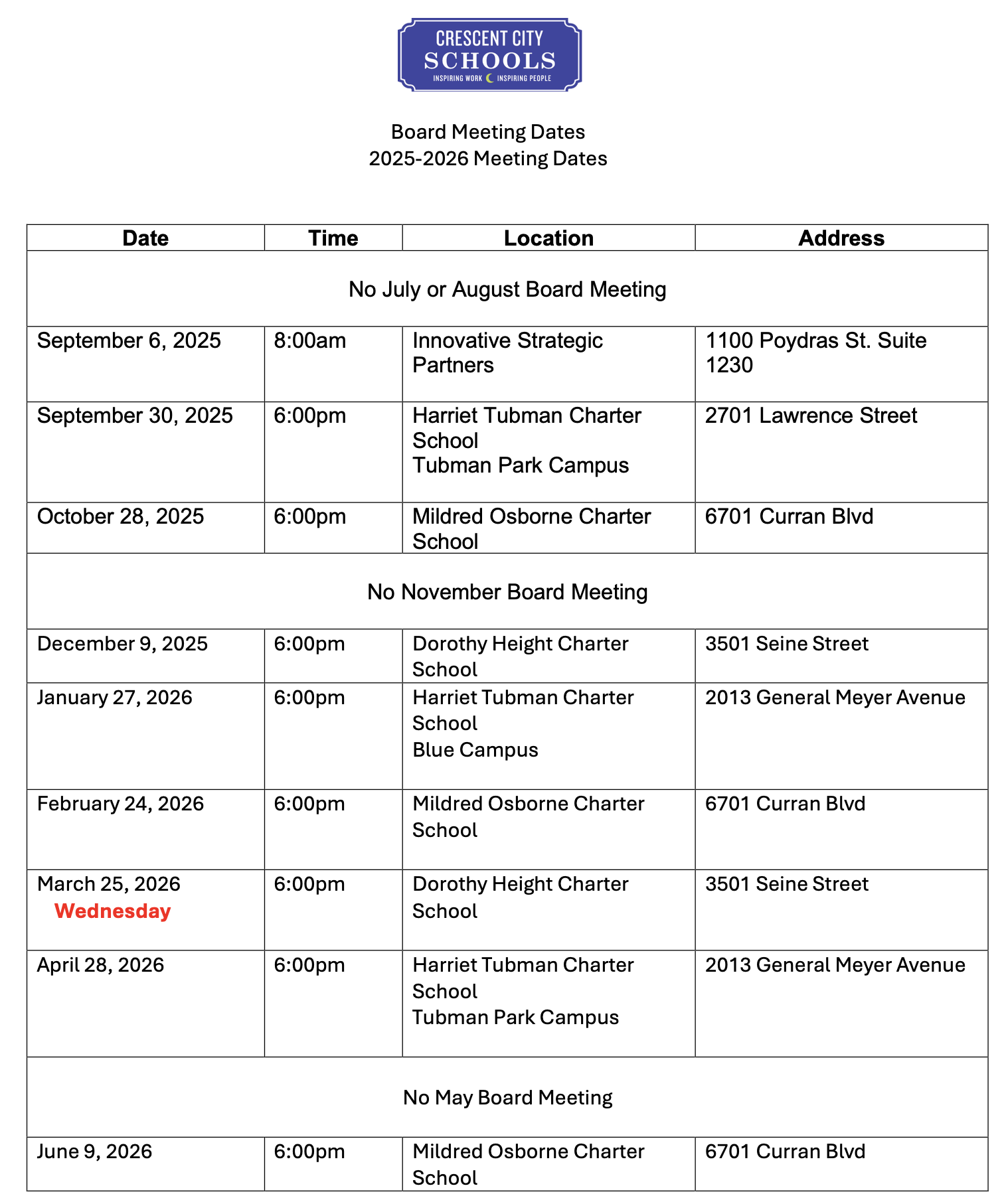 If you need one of these documents in a language other than English, email inspire [at ] crescentcityschools.org